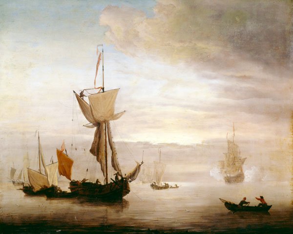 Related to - though not directly copied from - a work of 1691 by Willem van de Velde the younger. This painting was reviously catalogued as Monamy, but is probably a work of his studio, c.1720.