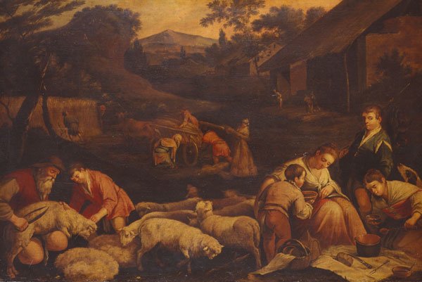 With DPG398, DPG412 and DPG422, one of a series which derives ultimately from a set of Seasons painted by Jacopo and Francesco Bassano in 1577. The originals of Summer and Autumn are in the Kunsthistorisches Museum, Vienna. Spring and Winter are lost, but known in replicas by Francesco, also in Vienna. The Dulwich copies are probably taken from one of the many series of replicas produced by Francesco and his studio, which omit the small biblical scenes in the backgrounds of the originals. Murray suggested that they might be the work of A. Colonia, who is said to have made copies after Bassano, but they do not seem stylistically compatible with his work.