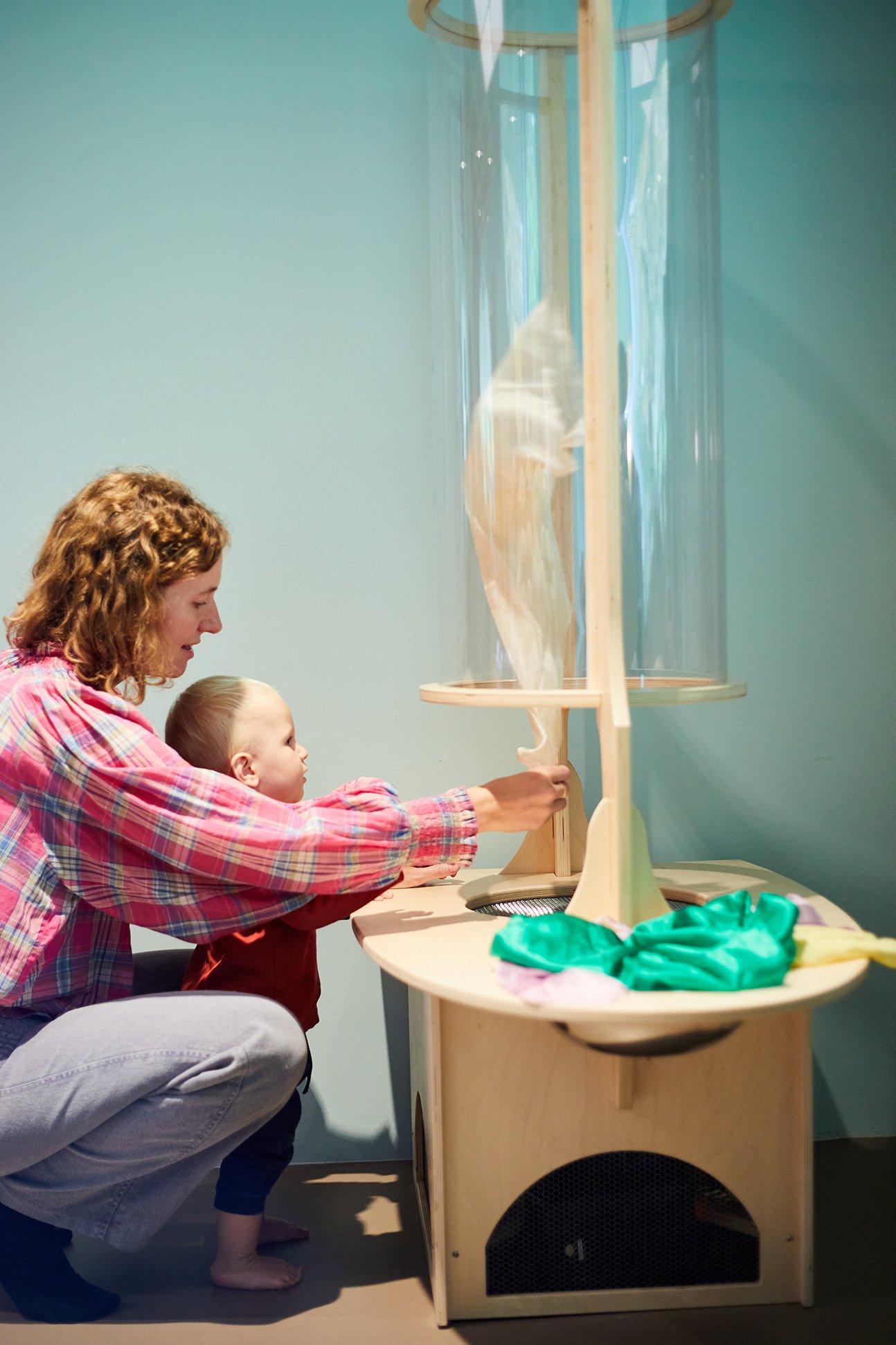 Set in the Gallery’s Sculpture Garden, our immersive play space invites little ones to explore the elements. They can experience sunlight, water, wind and earth through engaging sensory activities.