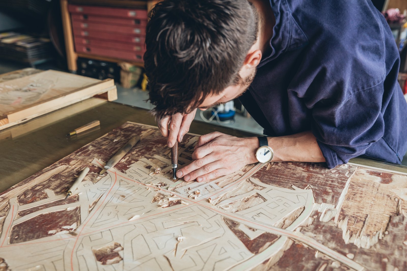 Draw and cut your own woodblock using Japanese Shina plywood and traditional tools and explore the process of hand-printing on different paper types. Then learn how to use multiple blocks to build colour and design, as well as reduction-cutting techniques to create more complex prints.