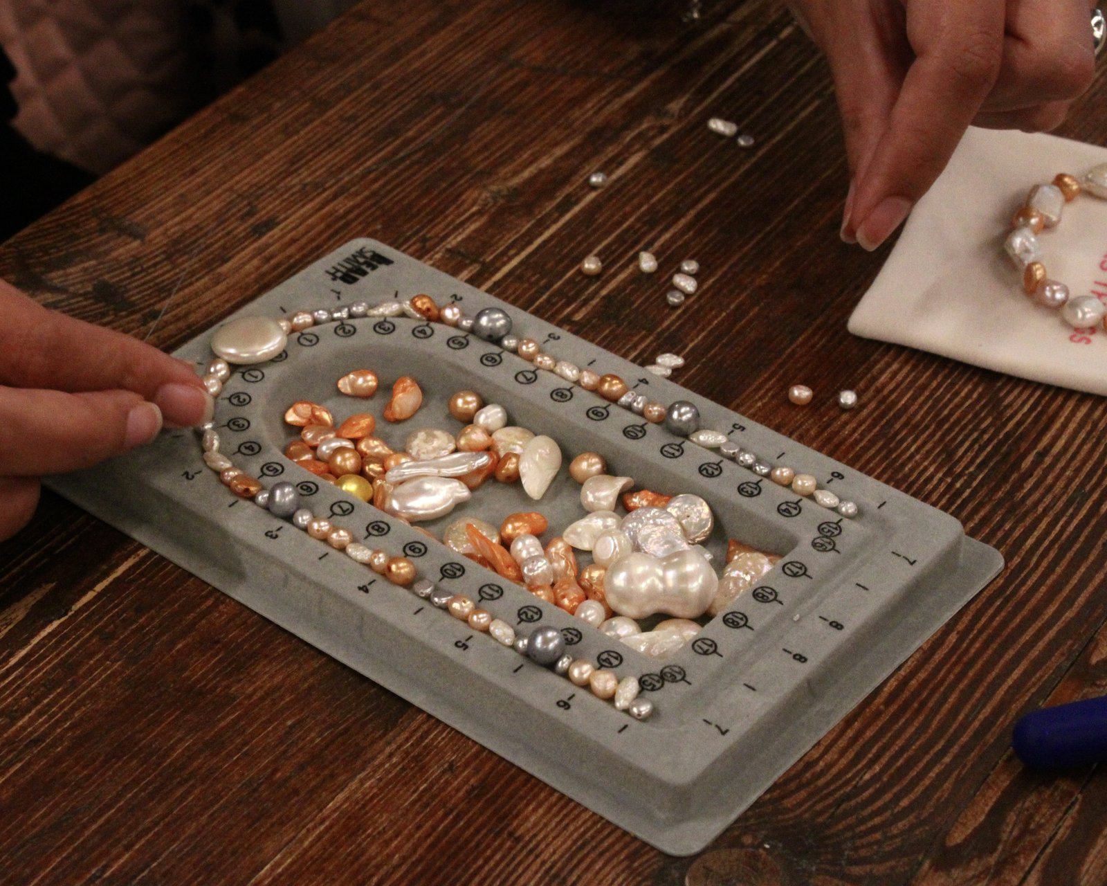 You'll be able to choose pearls from a large selection, preparing a mock-up to picture what the final piece will look like. As you start beading a personalised piece, you will finally, end the session by learning how to fasten it.